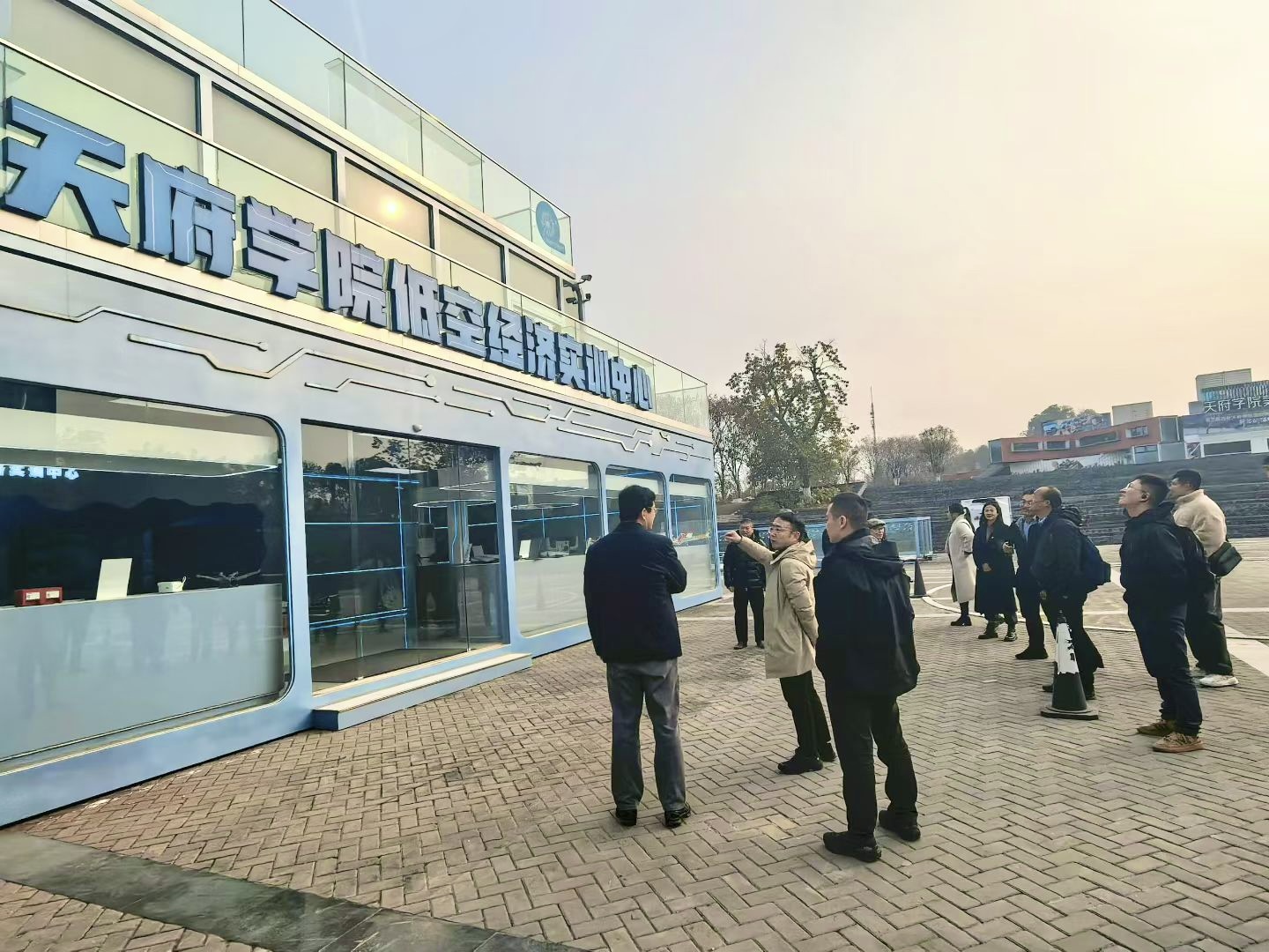 随后,交流团来到西南财经大学天府学院低空经济实训中心,依次参观无人机展厅、校园智能巡检系统、物流配送模拟区和“低空立体交通红绿灯”演示平台及低空直播间。实训中心将课程教学、实操训练与场景应用有机结合,展现学校在低空经济教育与实践平台建设方面的系统布局。