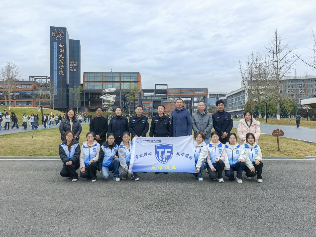 为深化警校共育机制,筑牢校园安全防线,3月18日,西南财经大学天府学院首支警校共育“青春无诈”志愿队启动仪式在德阳校区图书馆514会议室顺利举行。罗江区万安派出所分管社区副所长张浩、学校校长助理高亮出席仪式并致辞,万安派出所分管社区中队长杜建一行和学校办公室副主任王振宇、教务处副处长邓涵爻、学校语言文字工作专项工作负责老师秦陈荣及全体志愿者参加了本次启动仪式。