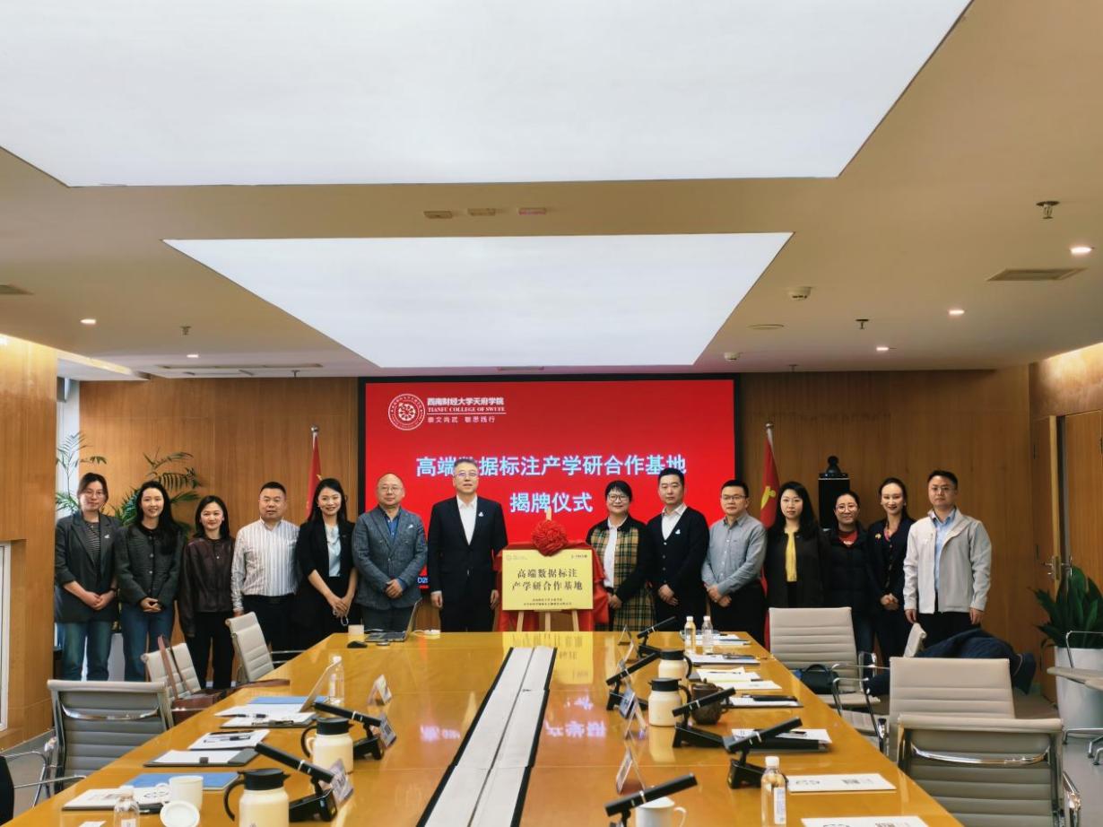 3月26日下午,西南财经大学天府学院与中关村科学城城市大脑股份有限公司(以下简称“中科大脑”)高端数据标注产学研合作基地揭牌仪式在学校成都校区(西区)举行。中科大脑总裁李浩浩、副总裁刘晨曦、营销总监巫桂香、行业总监陈枭、北京中科智媒融媒体技术有限公司运营总监姚蓉,学校校长蒲果泉,党委书记、省政府督导专员韩秀英,副校长姚一永、苟兴才,校长助理蔡松伯共同出席主持。仪式由产教融合中心主任王钰主持。