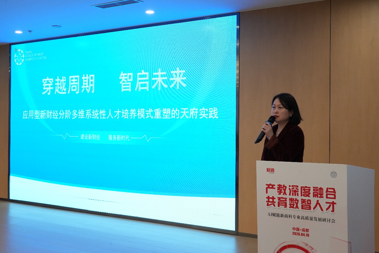 4月10日下午,由四川省普通本科高等学校教学指导委员会应用人才培养指导委员会指导,用友网络科技股份有限公司主办,西南财经大学天府学院与新道科技股份有限公司共同承办的“产教深度融合 共育数智人才——AI赋能新商科专业高质量发展研讨会”在成都顺利举行。本次会议围绕人工智能背景下新商科专业转型与人才培养展开,吸引了来自川渝两地高校、企业及行业的专家学者与业界代表齐聚一堂,共同探讨AI赋能教育变革与产教协同育人新路径。