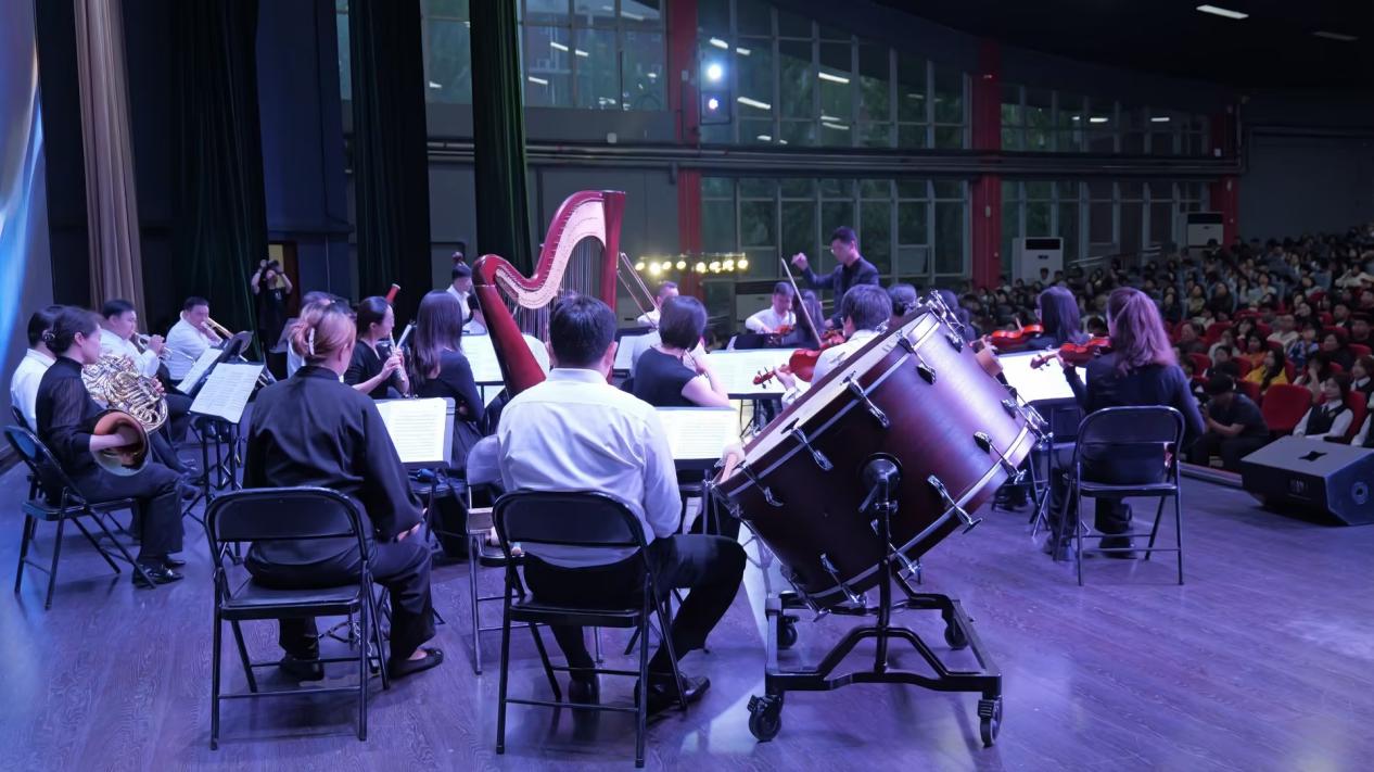 随后,四川爱乐乐团艺术家们盛装登场。在指挥家的引领下,乐团依次演绎十首经典交响作品,以娴熟技艺与饱满情感,为现场师生带来沉浸式高品质艺术享受。