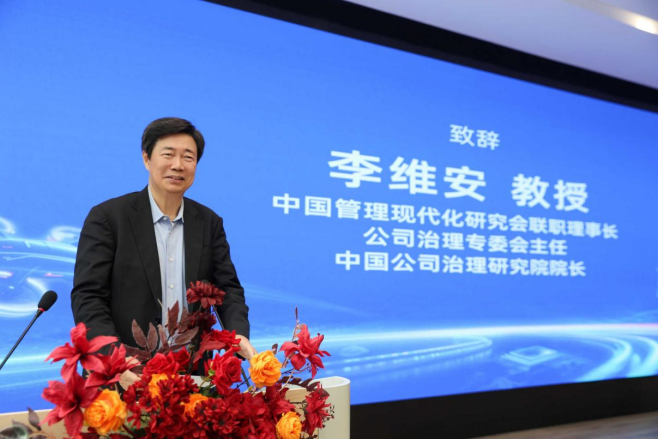 ▲中国管理现代化研究会联职理事长、公司治理专业委员会主任、中国公司治理研究院院长李维安教授致辞