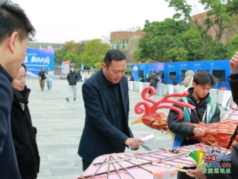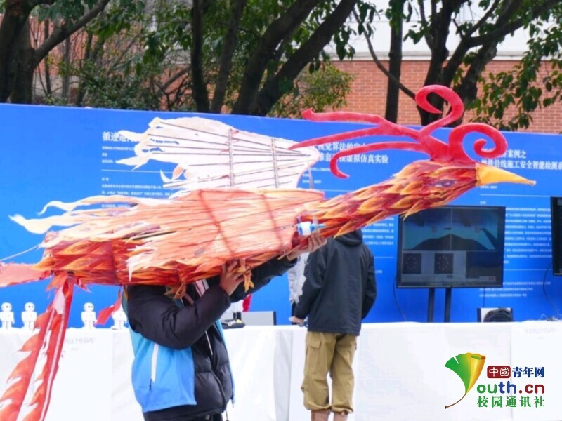 图为同学们将无人机与传统非遗形象——凤凰巧妙结合,为在场的同学们进行了精彩展示。李馥君 供图