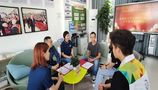 为全面加强劳动教育育人功能,积极探索和挖掘校地育人特点和劳动教育育人资源,5月31日下午,西南财经大学天府学院智能金融学院与绵阳科技城新区创业园街道八角社区居民委员会正式签订“劳动教育实践基地”协议书。绵阳科技城新区创业园街道八角社区党委委员、纪检委员、居务监督委员会主任唐小波,两委委员、八角社区妇联主席陈文静,两委委员、妇联副主席羊燕,居委委员、妇联副主席罗谷,学院党总支书记杨艳,副院长李道波,团学指导教师邓嘉婷以及学生代表田文举等参加了本次签约仪式。