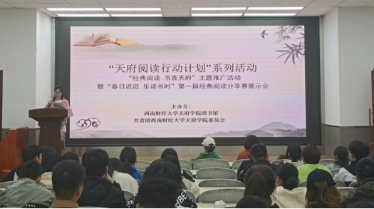 3月31日至5月18日,图书馆和党委学生工作部联合主办“天府阅读行动计划”系列活动之“经典阅读 书香天府”主题推广活动暨“春日迟迟 乐读书时”第一届经典阅读分享赛。最终评选出一等奖2名,二等奖3名,三等奖5名,优秀奖2名。