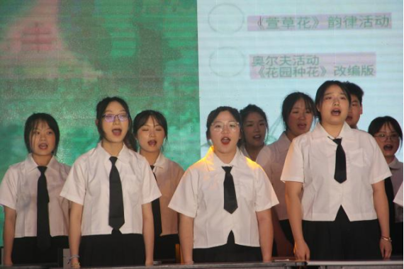 青春是一群人的疯狂与拼搏,有感动,有流泪,在毛婧等同学表演的情景剧《青春物语》让在场的老师、同学们充分感受到了青春的美好。当时针踩着岁月的和弦轻快地舞蹈,当岁月怀揣沉甸的心事揭开神秘的面纱,也许就像易福望等同学合唱的歌曲《海阔天空》那样,带着梦想再次扬帆起航。