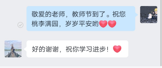 “春蚕到死丝方尽,蜡炬成灰泪始干”是形容老师燃烧自己只为照亮别人,启蒙老师更是一生中灯塔般的存在。在今年教师节之际,天府学子们纷纷用自己的实际行动回忆师情,感念师恩。学子们有的为老师细心编辑短信祝福恩师桃李满园;有的则当面向恩师致谢感恩,恩师多年的栽培与付出;有的将一片真情寄存于贺卡之上,以此致谢恩师。老师们收到节日祝福,都倍感欣慰,脸上洋溢着幸福的笑容。