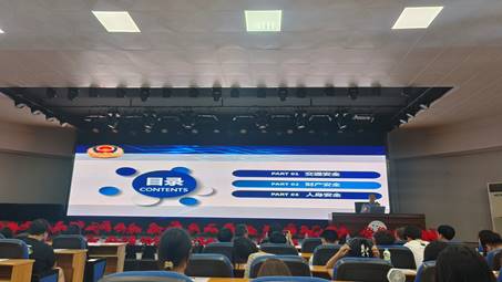 讲座伊始,李道波致辞,对绵阳市科技城新区公安分局同志的到来表示热烈欢迎,通过案例引入,表明随着网络新媒体自由度不断提高,网络安全日渐引起大家的重视,网络诈骗手段不断翻新,花样层出不穷,新老诈骗手段交织。提醒同学们一定要加强自我防范意识,提高识骗防骗能力。随后,罗国勇向同学们询问是否了解基础的法律知识,逐渐引入安全主题教育。罗国勇分别从交通安全、财产安全和人身安全这三个方面进行详细讲解。针对校园中电动车的不规范行驶、违规搭载、未戴安全帽和乱停乱放等现象,罗国勇表示要密切关注,不断提醒,增强同学的安全防护意识;针对财产安全,提醒同学们树立安全意识,妥善保管自身财物,养成随手关窗关门的习惯;针对人身安全主题,罗国勇以网络自由度作为铺垫,引发了同学们对于网络诈骗的思考,然后又以当下热映的影片《孤注一掷》举例,指出境外诈骗的运营方式和对人身安全的危害。