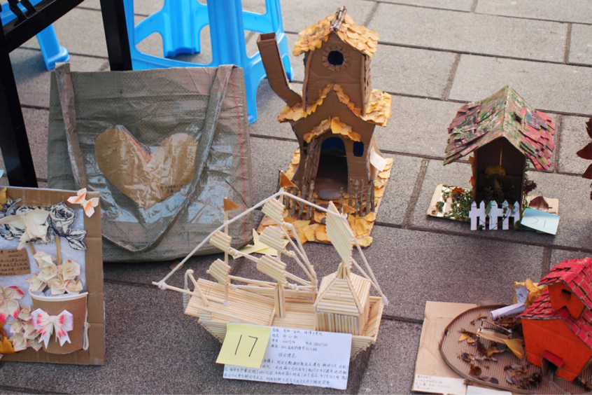 活动期间,学院共收到423件参赛作品。工作人员根据作品的创新性、艺术性、实用性、环保性,评选出优秀作品并在食堂门口进行展示。