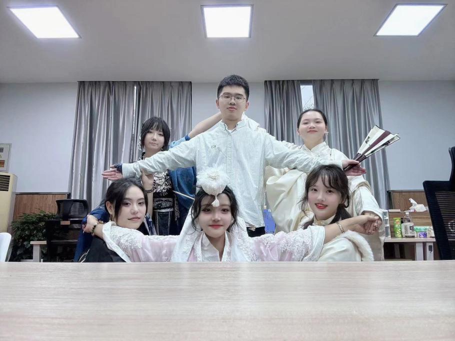 全院师生身着民族服饰进行日常学习和生活,在校园内你能看见“奇异姿势”打卡的“小书童”,在时代广场参与国际教育展的“带刀侍卫”,在食堂购买兰州拉面的“文人雅士”,在操场嬉戏玩耍的“大家闺秀”。