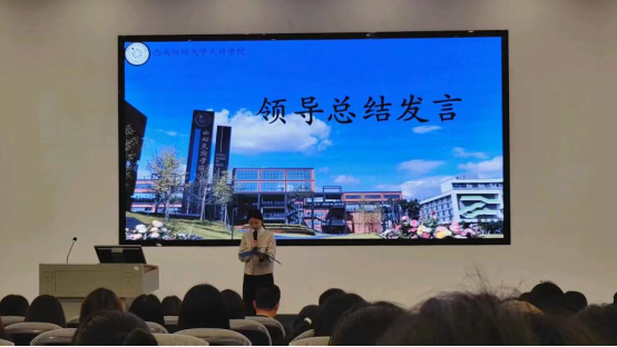分享会最后,严飞雷表示:“此次分享会旨在通过优秀学子的榜样作用,激发广大同学的学习热情和创新精神。希望通过这样的活动,能够营造一个积极向上的学习氛围,推动校园学风建设和人才培养。同时,也希望同学们能够在未来的学习生涯中不断探索和实践,成为真正的模范学习者。”