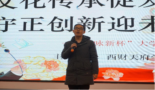 根据选手的现场演讲情况,各位评委从仪表形象、演讲内容、语言艺术等方面进行了点评与评分。经过精彩比拼与激烈角逐,2号选手刘鑫荣获一等奖。最后,胡金亮对本次比赛进行总结。他对各位选手的前期准备与演讲表现给予了肯定。他希望青年学生既要善于从中华优秀传统文化中汲取智慧和能量,又要自觉肩负起文化传承、守正创新的历史重任,争做堪当民族复兴重任的时代新人。