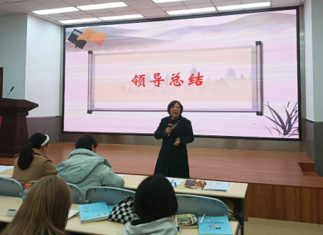 决赛结束,武同雁进行活动总结,她充分肯定了各个团队的精彩呈现,并希望在今后的读书过程中把“智读经典,悦创梦想”这个主题活动做的更具特色和影响力,还以《劝学》中的经典语句“不积跬步无以至千里,不积小流无以成江海”鼓励大家在学习生活中继续坚持读书。