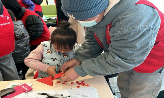 活动伊始,志愿者们用亲切的口吻,绘声绘色的为孩子们讲解了剪纸的文化背景及发展史,让孩子们对剪纸有了初步认识。在剪纸活动的体验和实践环节,志愿者们耐心的教孩子们剪纸,孩子们借助工具,尝试着不同的风格和技巧,剪刻结合,沉浸在别具魅力的剪纸创作之中。大家亲身体验才知道,剪纸看似简单,但还需要长期练习才能得心应手。实践操作结束后,小朋友们开心地举起了自己的工艺作品与志愿者合影留念。