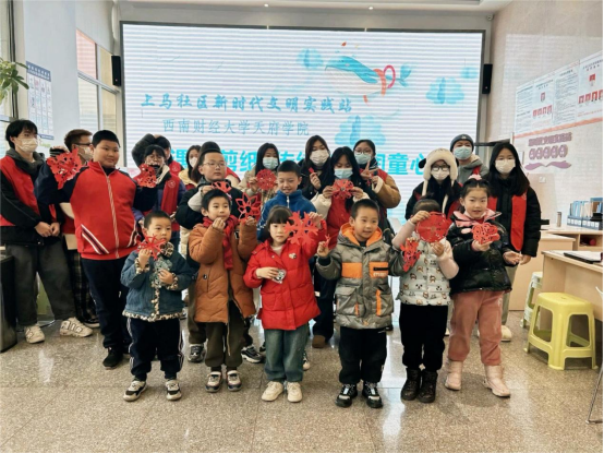 剪纸,又叫刻纸,是汉族最古老的民间艺术之一。为让剪纸焕发出新的生机,大力推进校园传统文化建设,厚植民族文化情感,西南财经大学天府学院雷锋站于12月17日在上马社区党群服务中心举办“遇见剪纸、浸润童心”主题活动,向小朋友科普民间艺术——剪纸,通过活动鼓励小朋友发挥想象力,激发创造力。