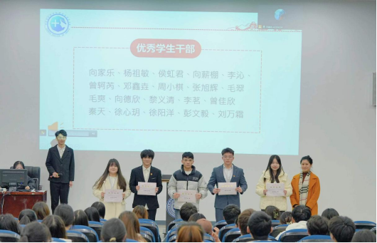 陈雯发表致辞,她肯定了团总支、学生会在过去一段时间内的工作成绩,感谢团总支、学生会全体成员为同学们搭建了优质的二课平台。她表示,团总支、学生会作为学校共青团工作的核心组织,要充分发挥其在思想引领、组织建设、校园文化等方面的作用,不断加强自身建设,加强与各学院团总支、学生会的交流与合作,开展丰富多彩的校园文化活动。希望同学们不忘初心、牢记使命,书写美好青春,创造无限未来。随后,学院团总支、学生会指导老师为本学期优秀学生干部颁奖。