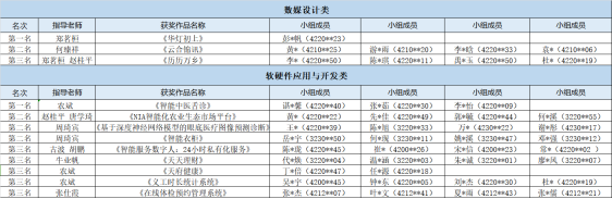 经过激烈的答辩竞争,比赛最后评选出12组获奖作品,其中数媒设计作品3组,软硬件应用与开发作品9组,具体获奖名单如下表: