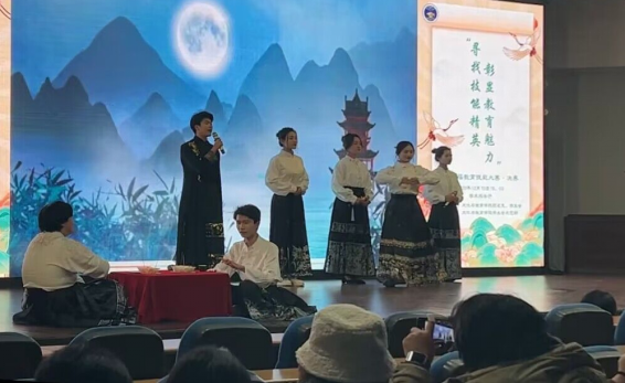 首先由文化与教育学院吴冰雨等同学带来的舞蹈表演《Super shy》开场,她们用活泼灵动的身姿诉说青春之美;付秋悦等同学展示的《精武魂》,将体育与武术融合,以精湛的技巧和磅礴有力的气势让老师与同学们感受到了泱泱华夏的民族气魄;侯梦琪等同学带来的《前赤壁赋》中,将诗朗诵与表演结合,深邃有力的嗓音配着生动的表演,让老师与同学们穿梭千年,同苏轼对望;达吉子达等同学给大家带来歌曲《不要怕》,用温柔而空灵的嗓音鼓励着同学们,带着信心和勇气向前进;程源云等同学通过幽幽的小调演绎的《成都》驱散了学子们的寒冷,让大家感到家乡不再遥远。