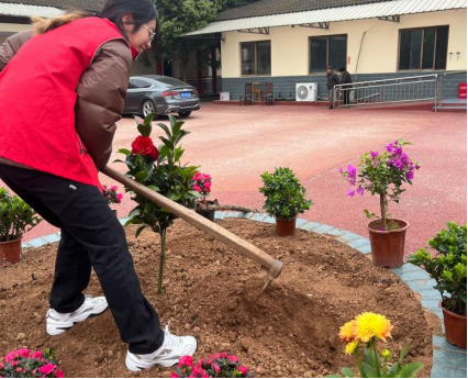 上午,志愿者们整装出发来到石洞乡敬老院植树地点,大家分工合作,挖坑、搬运树苗、培土浇水,一切忙碌而有序。在同学们的努力下,一棵棵小树苗扎根沃土,迎风挺立。