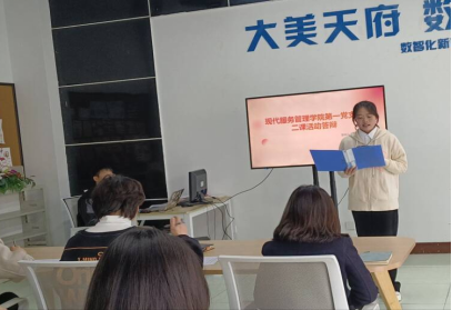 3月22日中午,为加强对学生实践能力的培养,促进学生专业技能和综合素质的提升,同时也是加强师生交流、推进服务管理学科建设的重要举措。学校现代服务管理学院于B6-1举办了二课答辩会,会议由张如意主持,现代服务管理学院党总支书记倪娅、副书记潘兰,第二党支部书记黄丹丹,团总支书记唐笛以及融媒体中心负责人赵颖出席本次会议,学院各部门答辩代表进行汇报。