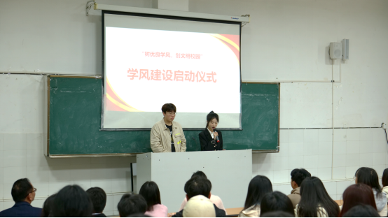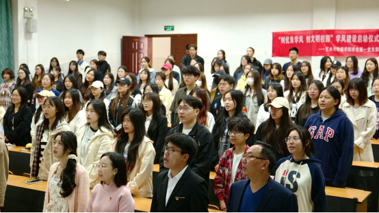 随后,在主持人的带领下,全体同学共同宣读了学风建设倡议书,并庄严宣誓。同学们表示将树立正确的学习态度,养成良好的学习习惯,严格遵守学校的各项规章制度,携手共进,共同为营造优良的学风环境贡献自己的力量。此外,入党积极分子代表徐兴也进行了热情洋溢的讲话,他倡议全体入党积极分子要充分发挥先锋模范作用,以身作则,严于律己,用实际行动带动和影响身边的同学。
