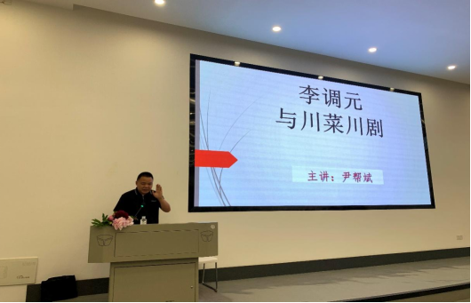 4月15日晚,由西南财经大学天府学院德阳校区图书馆主办,西财天府李调元文化传承发展中心、德阳校区天府图书管理委员会承办,面向德阳校区全体师生的“李调元与川菜川剧”主题讲座圆满结束。此次讲座邀请了德阳市作家协会副主席、罗江区文联副主席兼秘书长、罗江区作家协会主席尹帮斌先生主讲。尹帮斌具有丰富的李调元研究经验,先后主讲三国文化、调元文化、罗江地域文化等主题讲座20余场,西财天府学院图书馆副馆长都丽、德阳校区教务处和图书馆部分老师、西财天府李调元文化传承发展中心全体科研助理、德阳校区230多名学生参加了此次讲座。