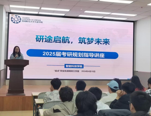 为了帮助意向考研的同学提供全面、深入的指导和建议,更好地适应备考,4月10日在实验楼110,智能科技学院起点职业生涯工作室开展了以“研途启航,筑梦未来”为主题的2025届考研规划指导主题讲座。本次讲座由在考研领域有着丰富经验和深厚造诣的教师刘兵兵主讲,学院党总支副书记李禹锌及学院部分同学参加。