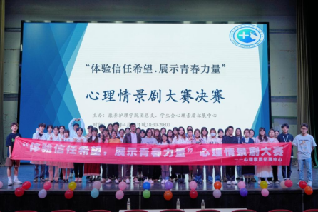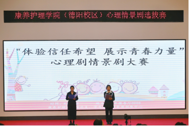 为提升大学生的心理健康素质,营造健康、阳光、友爱的校园氛围,西南财经大学天府学院康养护理学院于3月26日至4月10日在成都校区(东区)和德阳校区分别举办了“体验信任希望,展示青春力量”心理情景剧大赛。