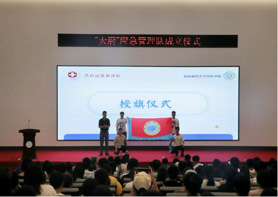 为了提升师生应对突发事件的能力,保障校园安全,会计学院于4月17日晚上举行了“天府”应急管理队成立仪式。参与本次仪式的有党委学生工作部副部长严飞雷、康养护理学院副院长张翼、会计学院党总支副书记孟仁丹、夏丹、康养护理学院第三党支部书记何腾飞、“天府”应急管理队指导老师姜风、袁海航,以及会计学院全体辅导员和全体“天府”应急管理队队员。