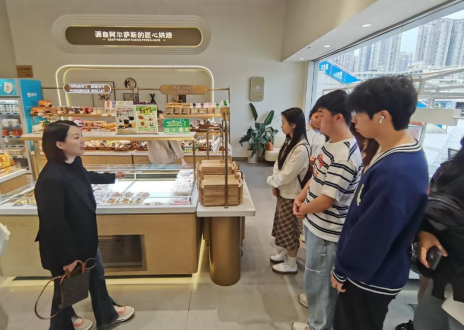 4月24日上午,2023级市场营销专业学生在专业教师杜民帅和黄晶的带领下,把课堂搬进阿芒迪娜乐荟城店,开展了一场别开生面的实践教学活动。此次活动的目的是让学生们能够深入了解连锁经营的奥秘,将课堂上学到的理论知识与实际操作相结合,提升专业素养和实践能力。天府学院校友、阿芒迪娜大客户经理何霞热情接待了前来参观学习的学生们。