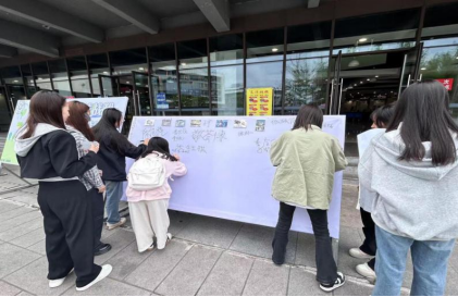 活动中,同学们积极踊跃的在空白展板上进行签名和留言。本次活动给在校大学生普及了世界地球日以及让大家更加深刻地认识到塑料制品对人类以及动物生存和发展的危害,这次活动也是西南财经大学天府学院会计学院践行新财经人才培养,提高大学生低碳环保意识的一部分。