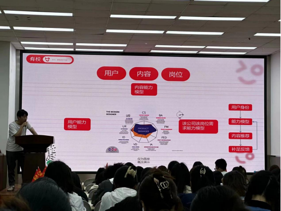 讲座中,黄丽深度剖析了大学生创新创业训练项目和创新创业类赛事,浅显易懂地介绍和分享了她对于大创项目的个人经验和建议。随后,裴一飞分享了自身经历,他表示当代新青年应在多样生活里大胆尝试,发挥自身才能,在社会实践中懂得饮水思源,回馈社会。最后,丁涛对其创新创业训练项目“有校有好饭”进行详细介绍,并分享了对于项目开创的思路与方法。