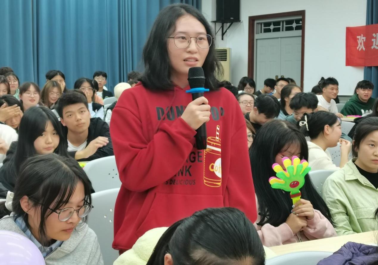 随后,杨菊梅作为新生辅导员代表热情欢迎新同学的到来,新生代表万文文同学上台分享了在大学里实现人生价值的美好追求,大二大三同学分享了她们进入大学后的学习和实践经验,其中王黎红从规划与目标设定、学习技巧和方法、执行方案等几个方面出发,分享了大学学习经验和人生规划,吴美锦则分享了自己的社会实践经历,包括“三下乡”和志愿者等相关经历,鼓励新生度过充实的大学生活。