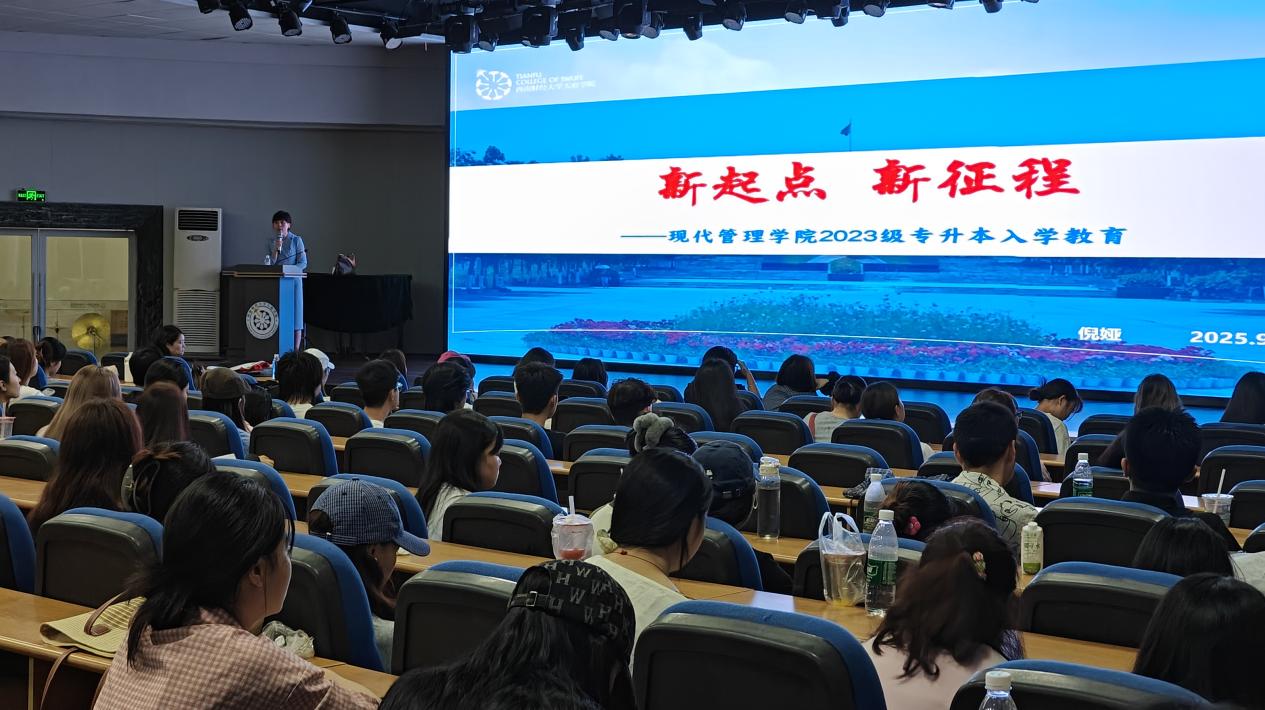 9月5日,现代管理学院精心组织了以“暖心·导学·筑梦”为主题的专升本新生“开学第一课”活动。本次活动旨在帮助新入校的专升本学生尽快适应新环境、明确新目标、开启新征程,通过系统的入学指导和教育,为他们顺利融入大学学习生活、实现个人成长与发展奠定坚实基础。
