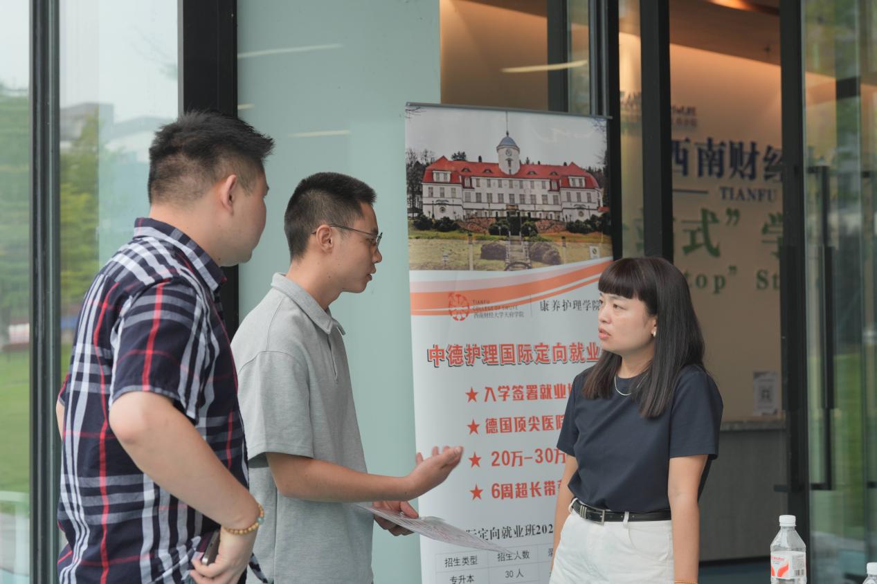 迎新当天,西南财经大学天府学院副校长张之明,学校康养护理学院分党委书记陈永清,副书记陈雯、任讷到达现场,逐一走访校门口、检录处、缴费点等,与老师和志愿者亲切交流,了解报到进度,确保迎新工作顺利进行。他们与部分新生进行交流,就生活服务、专业学习、就业前景等问题进行解答,鼓励新生“尽快适应新的生活,珍惜学习机会、做好学业规划”。