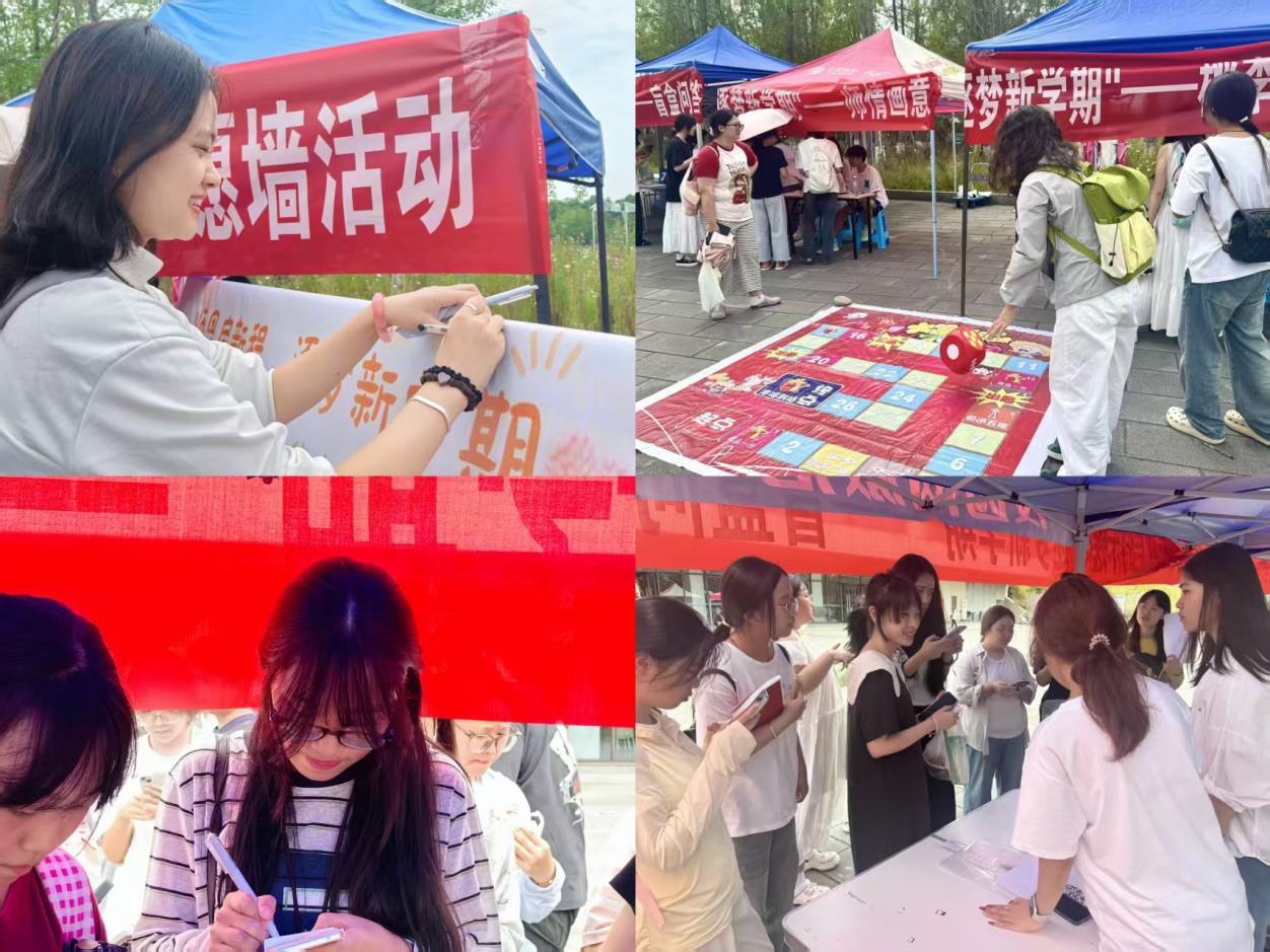 活动期间,校区内设置了三大特色活动点位,各点位精心设计、亮点十足,吸引众多师生参与。“心愿墙活动”在食堂门口展开,同学们将新学期目标、对未来憧憬及教师节祝福写在便利贴贴满展板,既为同学们提供了梳理成长方向的平台,也让教师真切感受到学生的感恩之心,成为校园里传递温暖的“情感阵地”;“师情画意”活动里,同学们用A5画纸描绘课堂教学、师生互动场景,既激发了同学们的艺术创造力,又通过画作定格师生间的珍贵瞬间,让无声的情感以可视化形式留存;“盲盒问答”中,参与者抽取盲盒回答校园知识问题,在趣味游戏中加深对校训、宿舍管理等校园规则的记忆,助力新生更快融入校园生活,强化对学校的归属感。