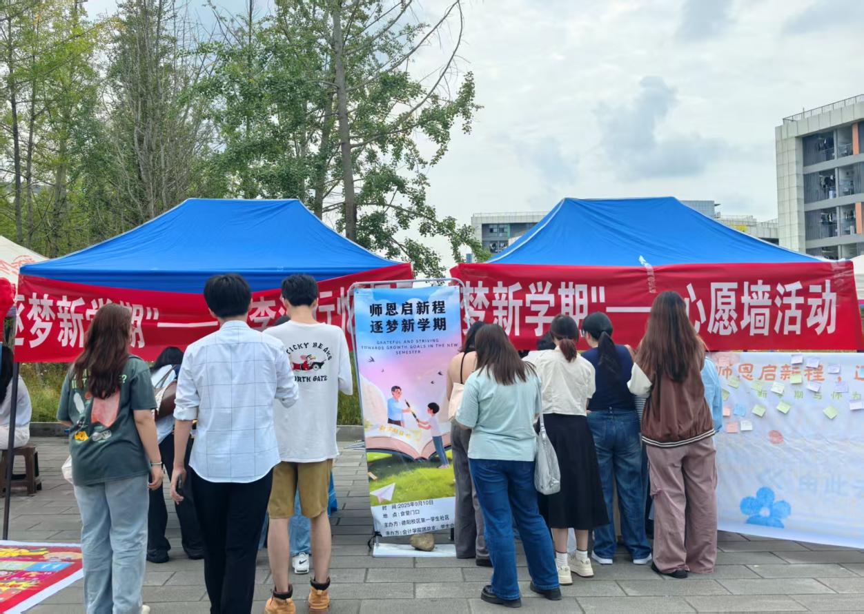 金秋送爽,师恩如光。德阳校区第一学生社区以“师恩启新程,逐梦新学期”为主题,于2025年9月10日至14日举办了一场别开生面的师生互动活动。此次活动不仅弘扬了中华民族尊师重教的优良传统,更搭建起一座师生心灵相通的桥梁,助力莘莘学子在新学期扬帆起航、逐梦前行。