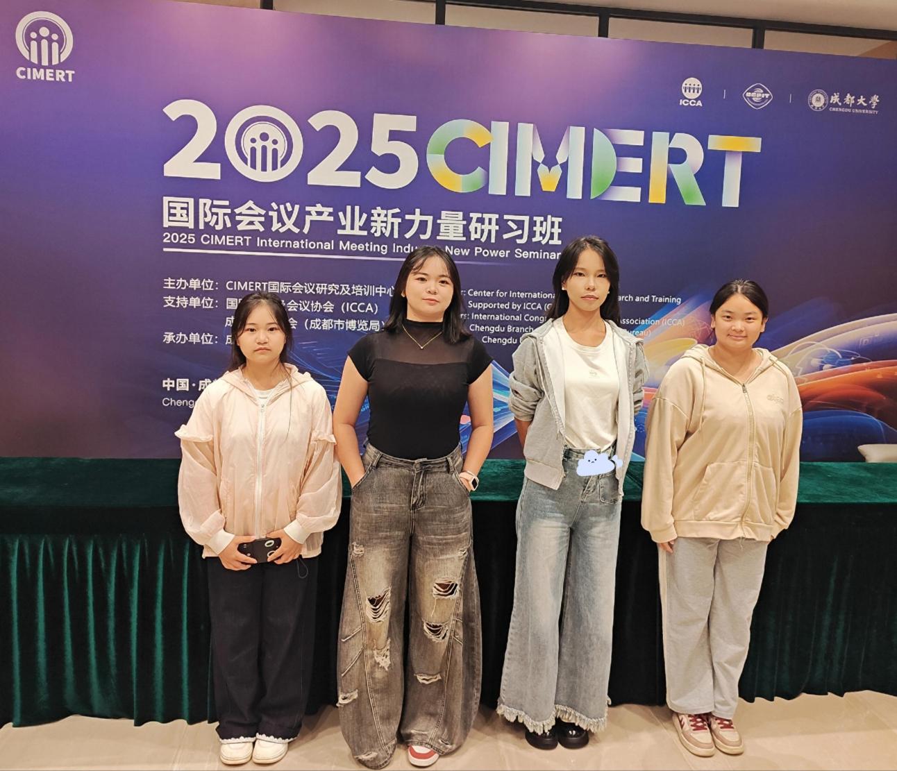 9月20日至21日,由CIMERT国际会议研究及培训中心主办,成都大学承办,国际大会及会议协会(ICCA)和成都市贸促会(成都市博览局)支持的“2025CIMERT国际会议产业新力量研习班”在成都市龙泉驿区丽呈東谷酒店(成都大学店)成功举办。西南财经大学天府学院现代管理学院李倩、蔡静、郭雪和董雯丽四名同学受邀参与,与来自行业内的专家学者、青年从业者齐聚蓉城,围绕“创造联结:国际会议举办与目的地营销创新”主题,开启了一场国际会议产业的知识与创新之旅。