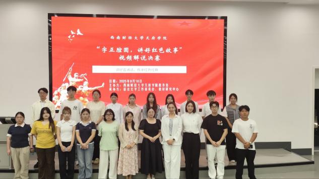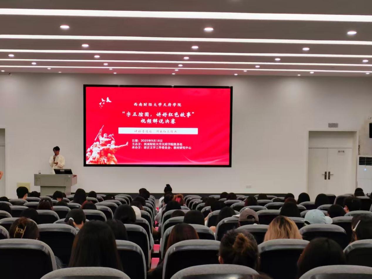 为引导广大青年铭记历史、缅怀先烈,深刻感悟红色文化的丰富内涵与时代价值,自觉成为红色基因的传承者和传播者,在“九一八”事变94周年之际,西南财经大学天府学院于9月18日晚,在德阳校区B301报告厅举办了“字正腔圆,讲好红色故事”普通话解说赛决赛。本次比赛由教务处主办、学校语言文字工作委员会、教材研究中心承办。教务处副处长邓涵爻和教务处语言文字专项工作负责老师秦陈荣担任本次比赛评委,同时本次决赛邀请四川工业科技学院教育学院张亚楠老师作为嘉宾评委。