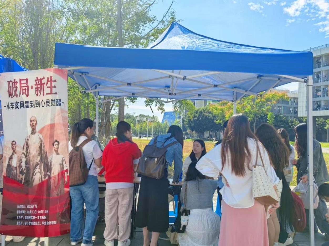 丹桂飘香迎金秋,辛亥精神映初心。在辛亥革命114周年纪念日来临之际,德阳校区第一学生社区于10月10日至14日成功举办“辛亥破局寻路,心灵觉醒启新生”主题活动。本次活动以互动为桥、历史为魂,深度融合历史叙事与心灵启迪,引导会计学院全体学子回望百年前那段波澜壮阔的“破局”征程,在与革命先辈的精神对话中,深刻体悟家国情怀,汲取奋进力量,筑牢信仰之基。
