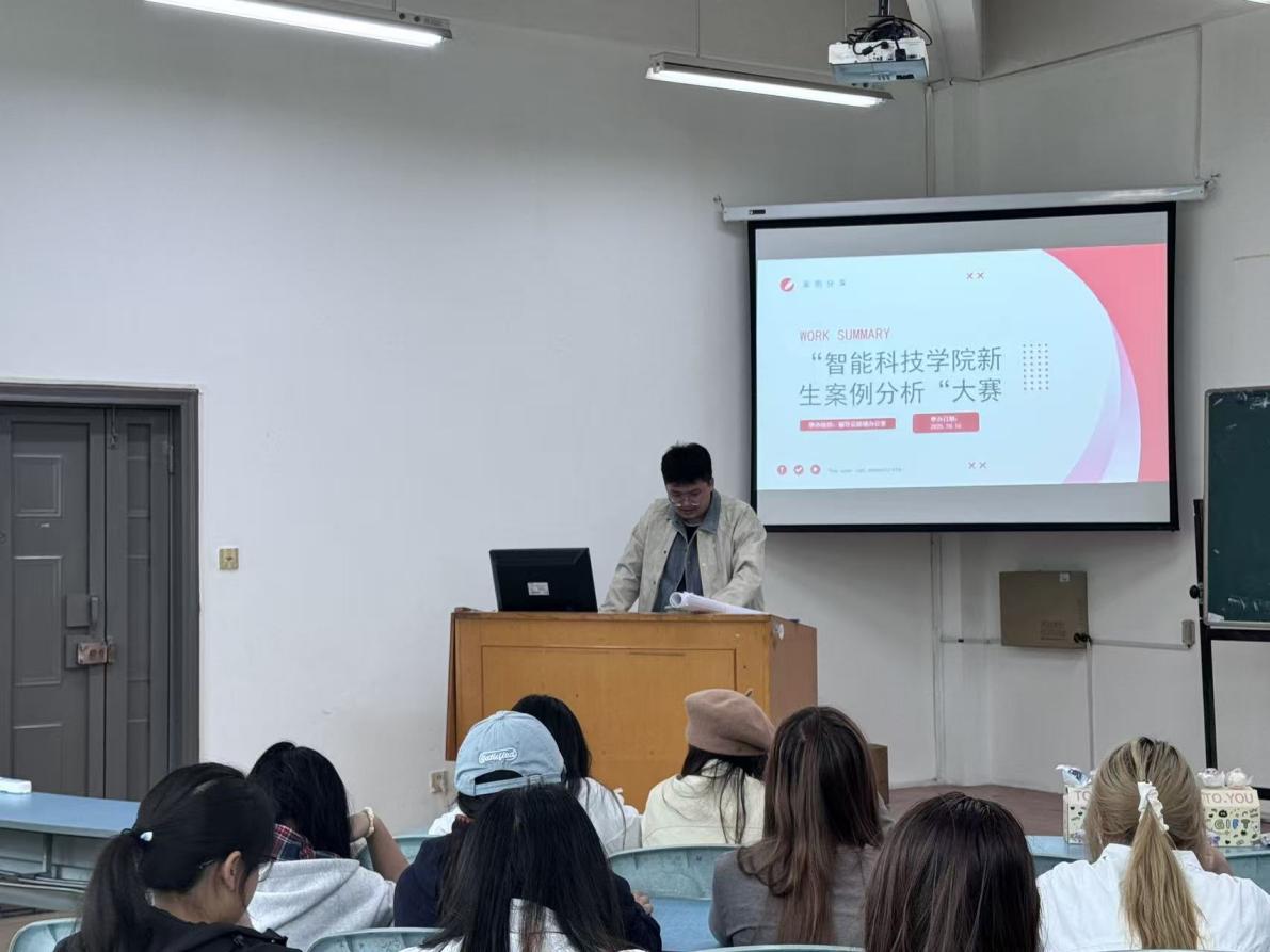 为全面提升新生助理的整体能力水平与综合素养,进一步推动学生管理工作规范化、人性化,10月16日,智能科技学院在实验楼101教室开展了新生助理案例分析大赛。此次活动由学院教师赵丽蓉主持,学院全体2025级新生助理参与分享交流。