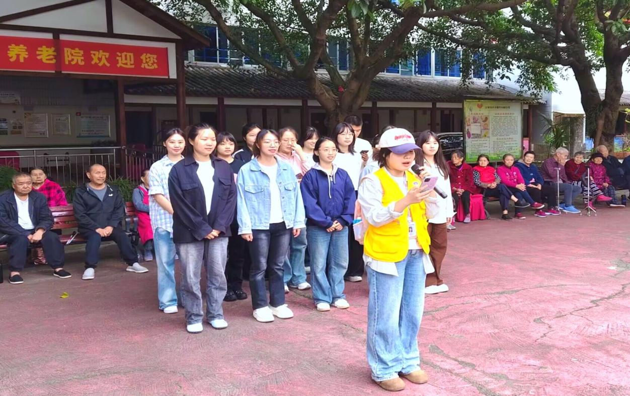 活动现场,同学们分工协作,用行动传递心意。在表演环节,歌曲《夕阳红》、诗朗诵轮番上演,老人们围坐在一起,跟着旋律轻轻哼唱,笑声与掌声此起彼伏;交流环节,同学们拉着老人们的手聊天,耐心倾听他们讲述过去的岁月,从生活琐事到人生经历,漫话家常间满是温情;在按摩环节,同学们则化身贴心小帮手,轻揉慢捶,为老人们缓解肩背酸痛,手法虽显青涩,却格外认真。此次恰逢其中一位老奶奶生日,现场的同学们与其他老人一起为她唱起生日快乐歌,送上暖心祝福。最后,同学们拿起扫帚、抹布,细致清扫养老院公共区域,擦拭门窗桌椅,让老人的居住环境更整洁舒心。