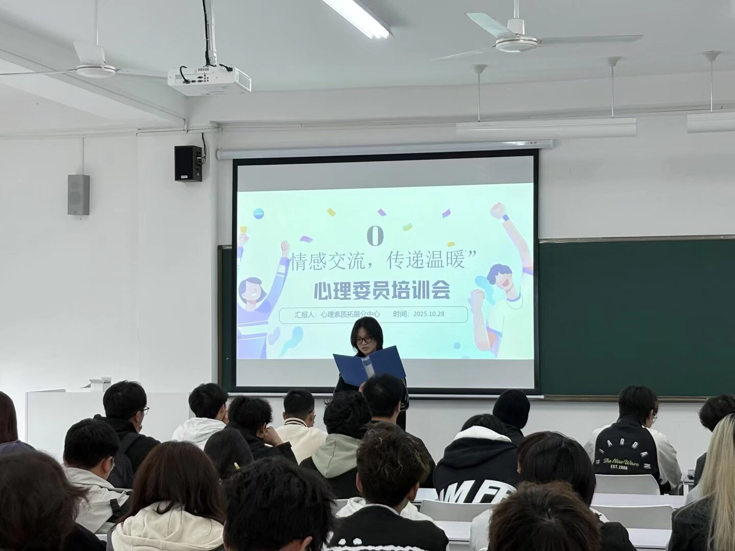 培训伊始,学院团总支副书记袁锦涛作动员发言。他强调,本次培训旨在帮助心理委员们提升专业识别与响应能力,使其能更准确地把握同学心理需求,更有效地提供支持。“希望各位委员将所学转化为日常陪伴与引导的实际行动,共同构建温暖、互助的成长环境。”