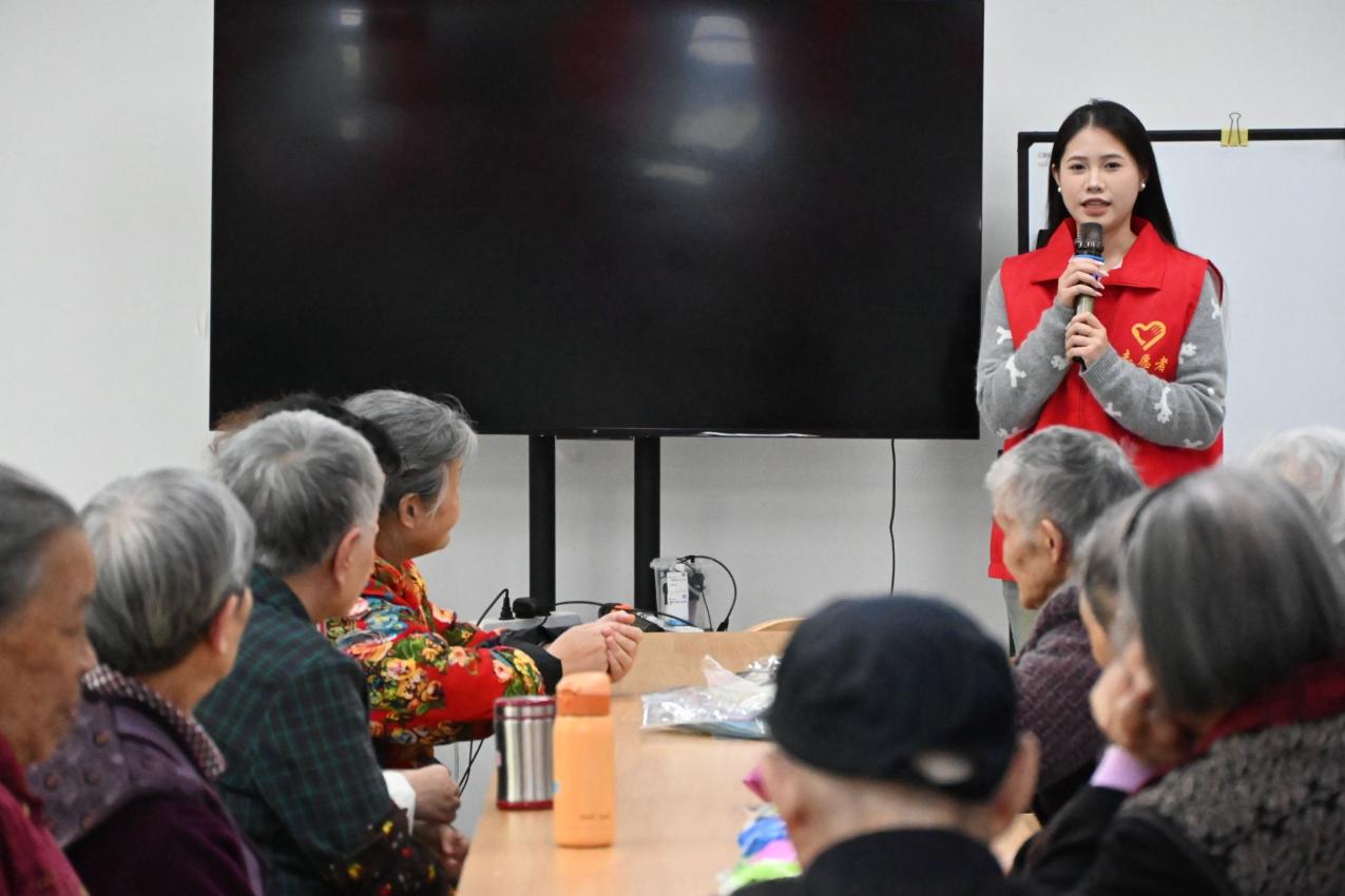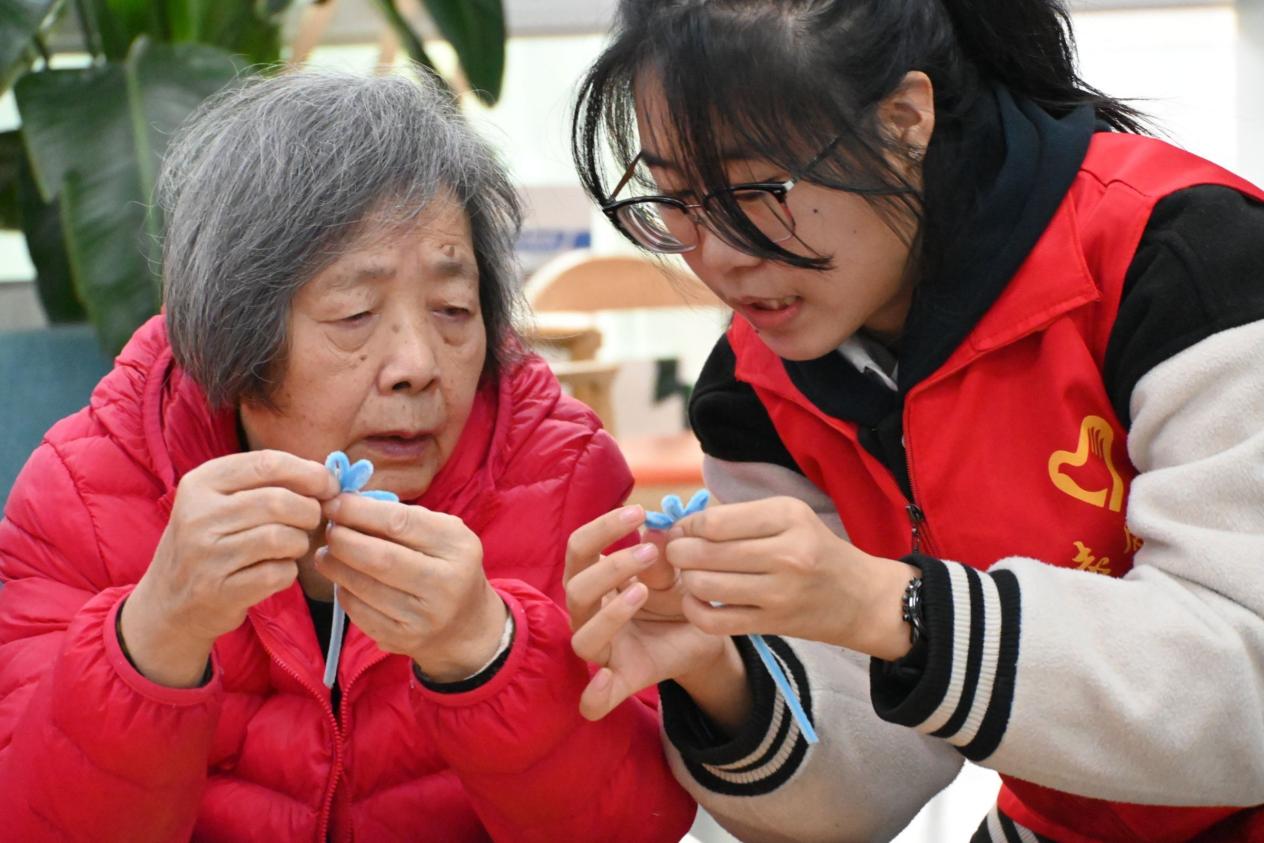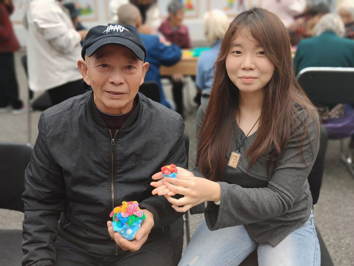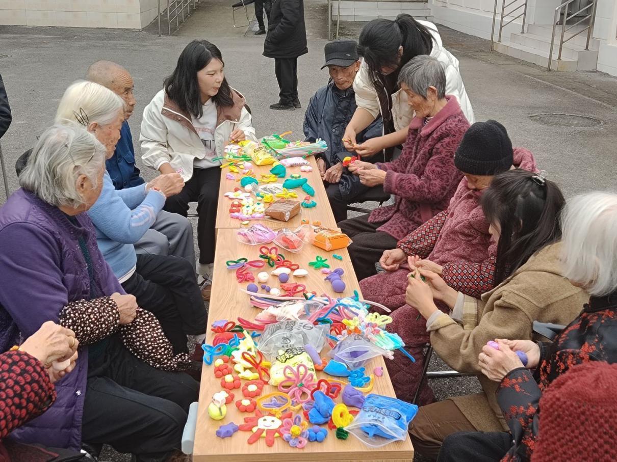 志愿者与老人们携手制作手工艺品