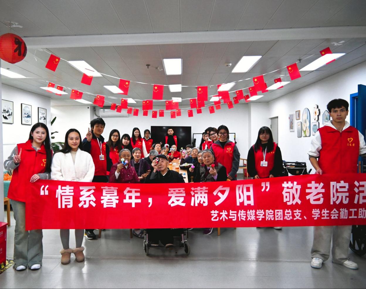 尽管活动时间有限,但真挚的陪伴与用心的交流,让两代人在这个秋日里结下了温暖的情谊。志愿者们以身体力行,将“敬老”二字化为一次次耐心的倾听、一句句温暖的问候。老人们面对生活时依然葆有的探索热情与从容智慧,也深深触动了在场的每一位青年学子,让他们对生命与岁月有了更深的感悟。本次活动不仅为老人们带去了精神上的慰藉与欢乐,也让同学们在服务中深化了对敬老爱老传统美德的理解。未来,艺术与传媒学院也将以此次活动为起点,持续推动志愿服务常态化、长效化开展,鼓励更多学子投身爱老助老事业,用青春的温度,为老人们的晚年生活增添更多暖色与光彩。