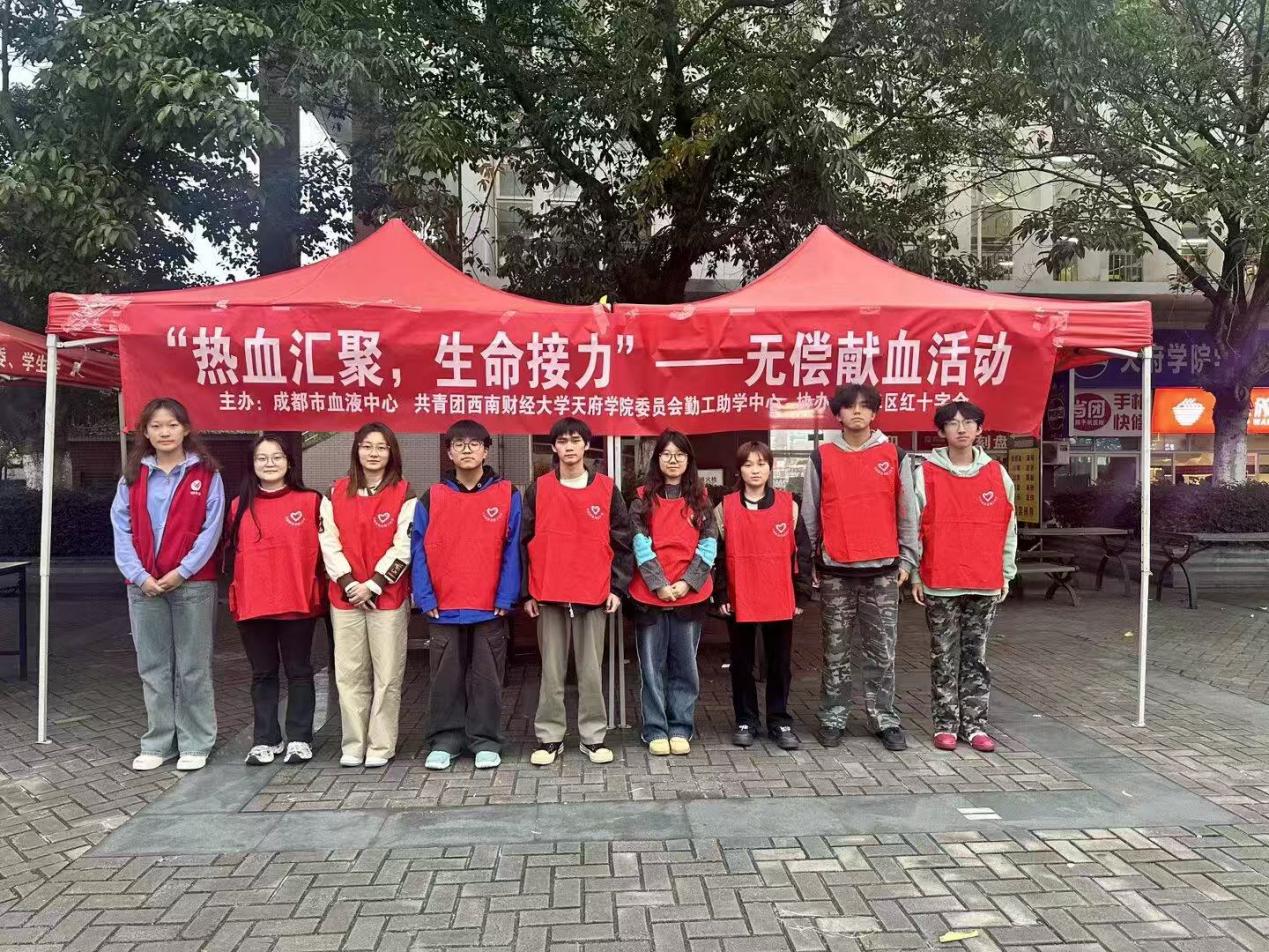 为大力弘扬“奉献、友爱、互助、进步”的志愿服务精神,广泛普及无偿献血知识,切实搭建师生参与公益的实践平台,11月12日至13日,共青团西南财经大学天府学院委员会勤工助学中心牵头,联合成都市血液中心,并协同成华区红十字会,共同举办“热血同心,生命续航”无偿献血公益活动。此次活动并非简单的公益之举,更成为青年学子以热血践行青春担当、用行动传递世间温暖的生动缩影,彰显了天府学子的社会责任感与家国情怀。
