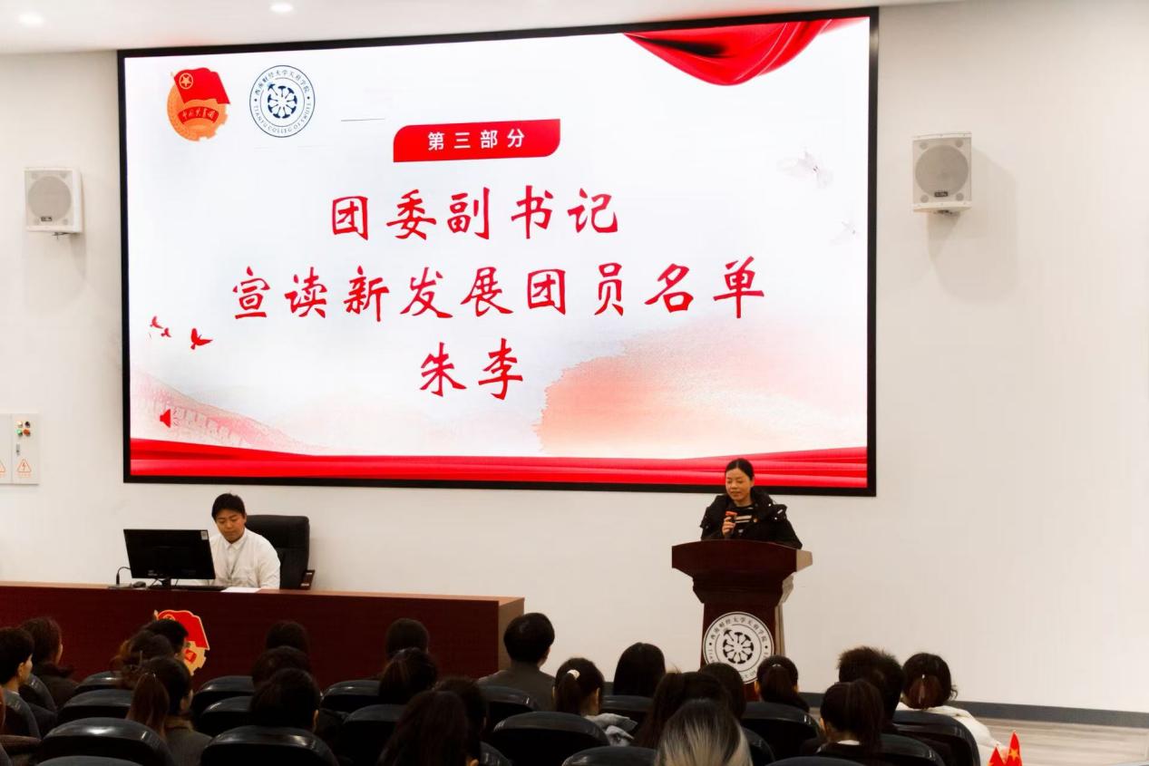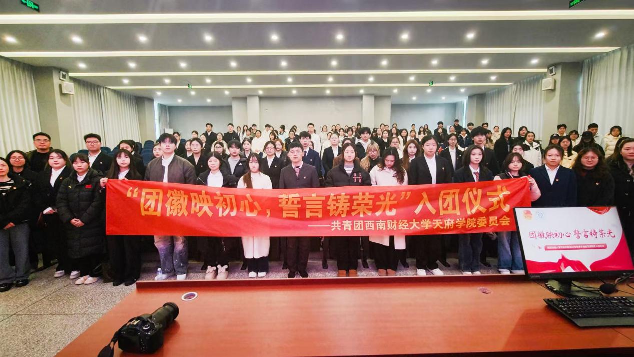 为进一步强化共青团组织建设工作,引领广大青年学子坚定理想信念,12月5日,共青团西南财经大学天府学院委员会精心组织开展了“团徽映初心,誓言铸荣光”新发展团员入团仪式。此次入团仪式在成都校区(东区)238教室举行。学校机关分党委书记蔡松伯、团委副书记朱李、艺术与传媒学院团总支书记张元辰、智能金融学院团总支书记刘海燕、康养护理学院团总支与学生会指导老师胡海鸿、体育学院第三党支部书记徐晓霞以及团员代表等共计190余人积极参与了此次意义重大的活动。