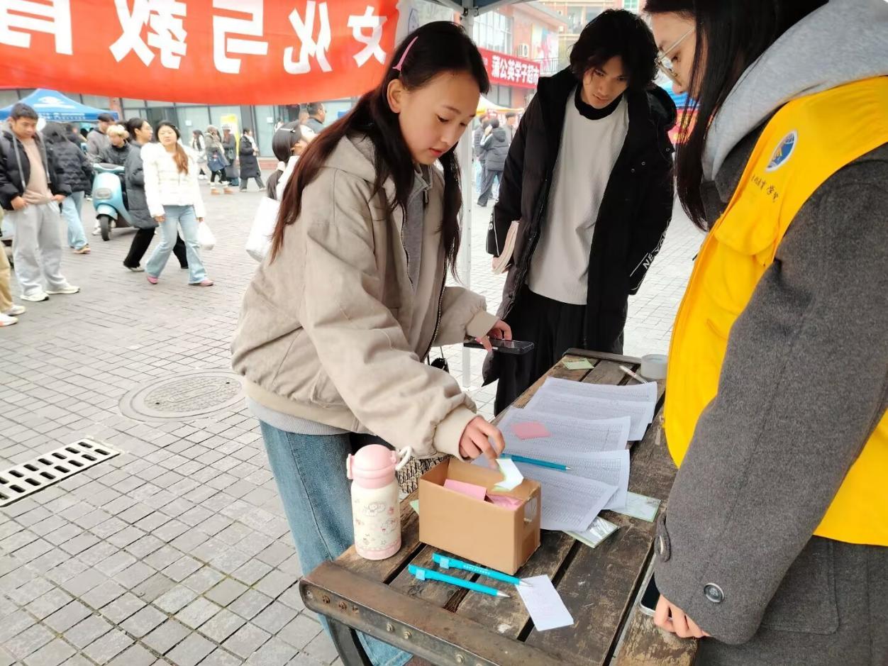 活动中,同学们在便利贴上写下各自专业的“冷知识”或实用学习技巧,也坦诚分享对其他专业的真实看法——从好奇、误解到由衷认可,每一张纸条都成为跨专业对话的鲜活线索。随后,大家将便利贴匿名投入盲盒,并从盲盒中随机抽取一张他人留下的纸条。在充满神秘趣味的传递中,知识与观点悄然流动,完成了专业间的互鉴与共鸣。