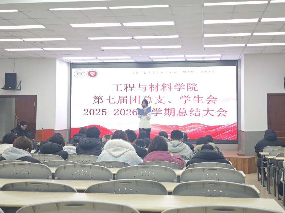 为系统总结学期工作,巩固成果、凝聚共识,激发团学组织内生动力,进一步推动团学工作高质量发展,12月14日晚,工程与材料学院第七届团总支、学生会2025-2026-1学期总结大会在实验楼110室隆重召开。学院团总支书记彭淑玉、学生副书记刘梦轩、秘书长王雨、学生会主席陶文鑫、副主席袁易焮、肖茹丹出席会议,第七届团总支、学生会全体成员参会。会议由办公室副主任周思妍主持。