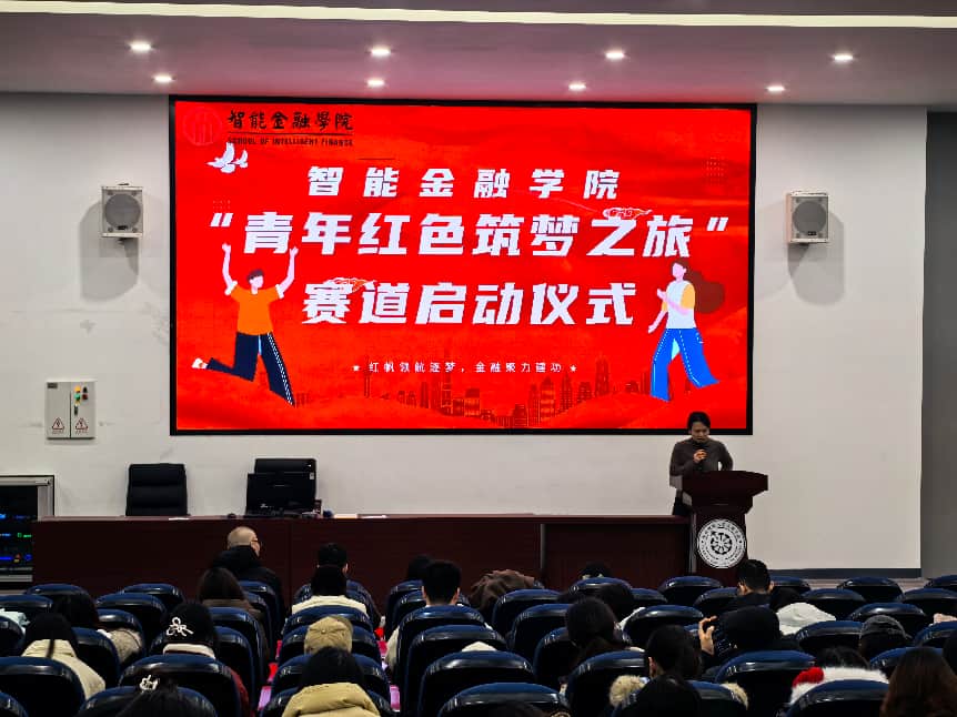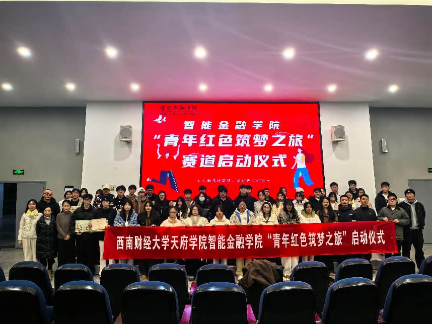 为深入学习贯彻习近平新时代中国特色社会主义思想,引导青年学子传承红色基因、践行初心使命,12月29日,智能金融学院“青年红色筑梦之旅”赛道启动仪式在成都校区(东区)238教室顺利举行。学院分党委副书记刘秀、副院长陈娴,学院分党委第一党支部书记刘佳、经济系主任丁文将、科创中心副主任田睿出席启动仪式,全体参赛队伍和部分学生代表共同参与。